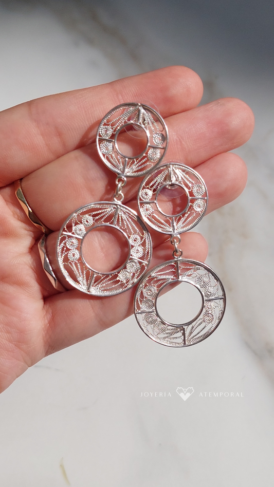 Aretes de Filigrana de Plata Broquel Dos Círculos