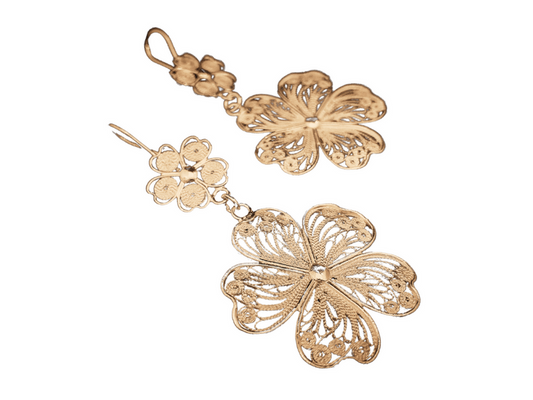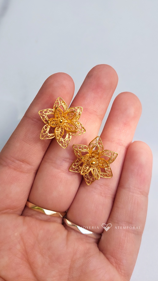 Aretes de Filigrana de Plata Doble Flor Pétalos Calados