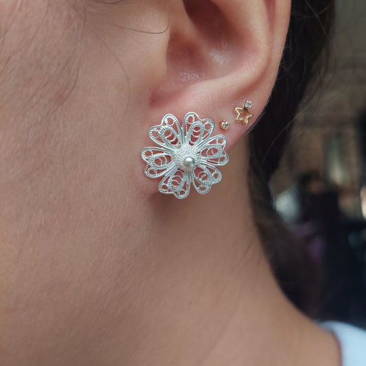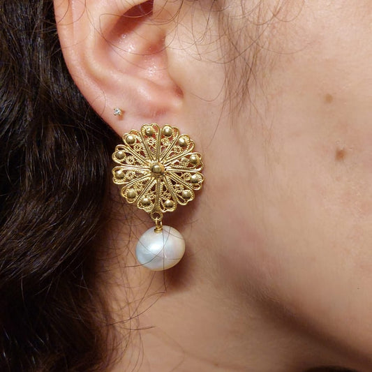 Arete Filigrana de plata de Sol y Perla BlancaPrecio habitual $ 1,948.00 MXNPrecio habitualPrecio unitario / por-