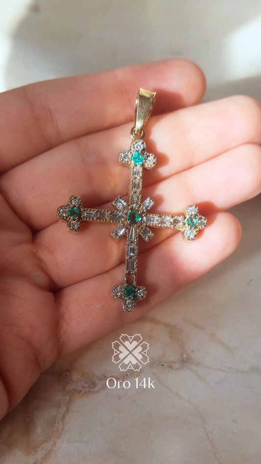 Dije de Cruz con Diamantes y Esmeraldas